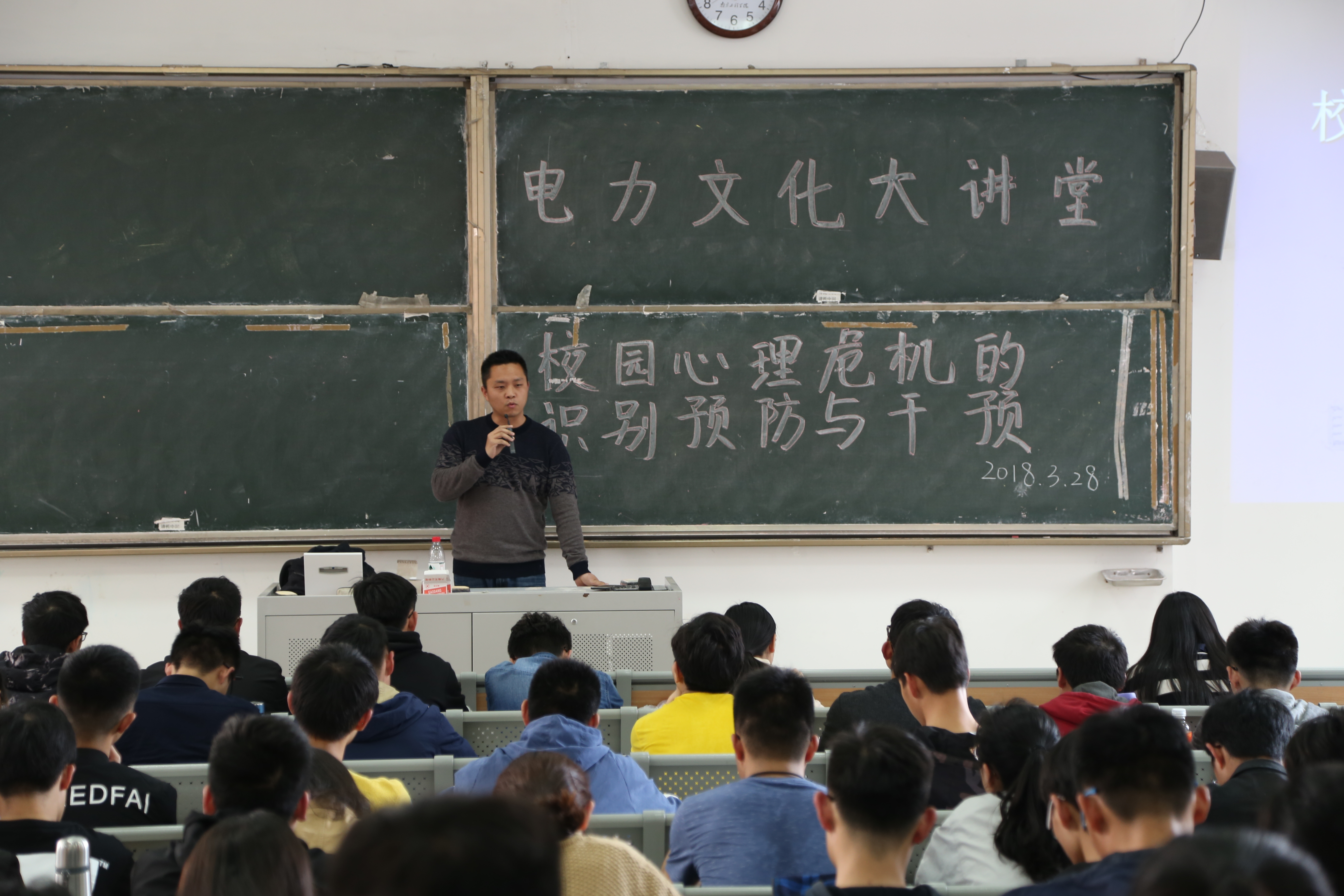 为提高同学们对心理危机的警惕,3月28日下午,校园心理危机的识别与干预讲座于东201举行,校学工处大学生心理健康教育指导中心王政老师主讲。